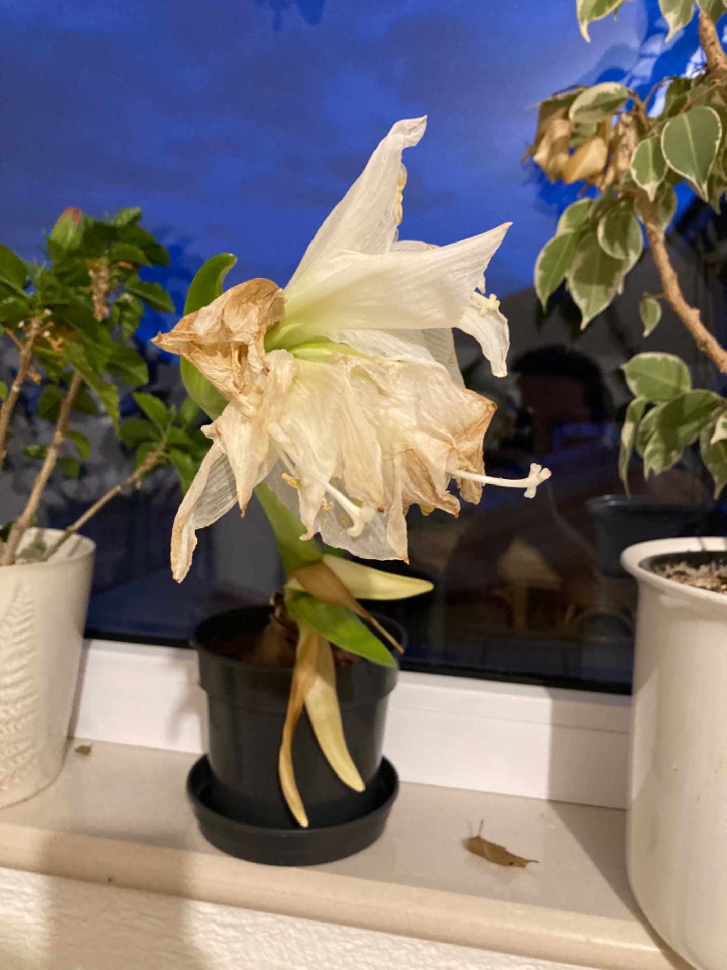 Nedavno jsem si koupila v krabičce květinku ukrytou do cibulky. Položila jsem ji do chladna a nechala ležet, že ji vysadím za pár týdnů, ale jdu po pár dnech kolem krabičky a nepřestávám se divit, protože krabička zkrásněla- vykukoval z ní nádherný okvětní lístek bílé barvy. Chuděrka bez vody dala najevo, že je připravena. Celou pokřiveně skoliotickou jsem ji vysadila a nechávám ji se plně nadechnout.